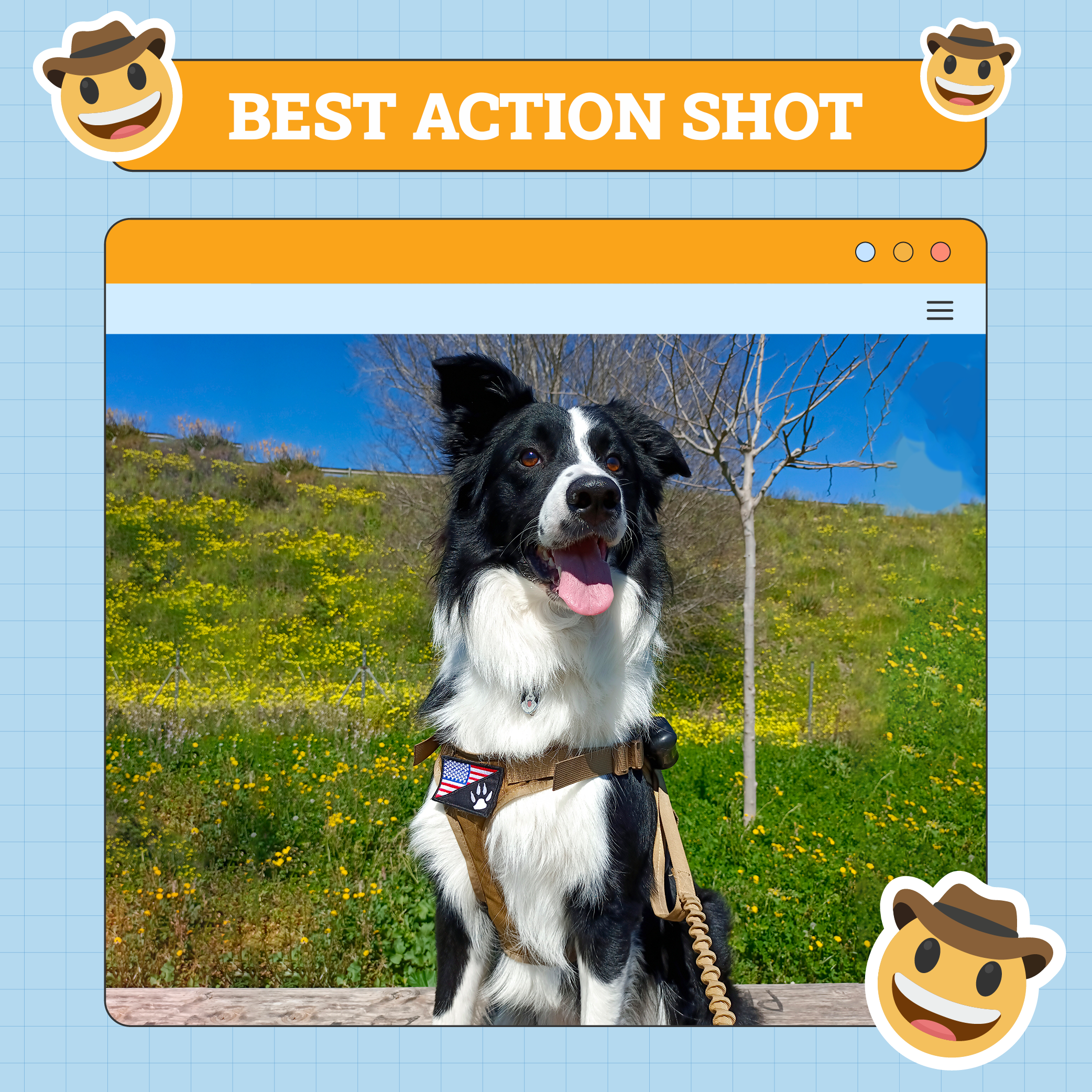 “Wally!! He’s my ray of sunshine, full of energy, he loves to socialize, and he’s very playful and at the same time very sociable. He loves nature, and this photo reflects that.” |